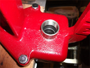 Anyway, it was obviously a lot beefier than the old challenger and once I'd bolted it to the bench I had a good look at it. The first thing I looked at was the top half of the ram. This is clearly a separate part and I soon found that it was detachable. It unscrews, using the priming arm as a lever. This is when I found out why the press is lighter than expected. The ram is tubular. Not just drilled but hollow. Now, I did wonder whether this means the ram is weedier than it could be but then common sense kicked in. Lee offer a .50BMG kit for this press & I can't see them doing that if there was any inherent problem. Anyway, most of my loading would be 357 mag. Hardly a challenge to even the smallest press.